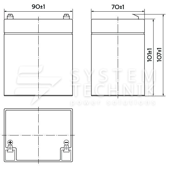- Срок хранения без подзаряда: 6 мес. при 25°C;