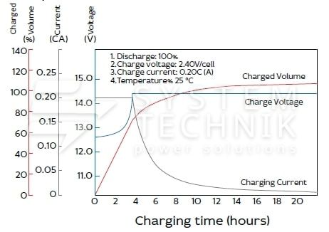 - Срок хранения без подзаряда: 6 мес. при 25°C;