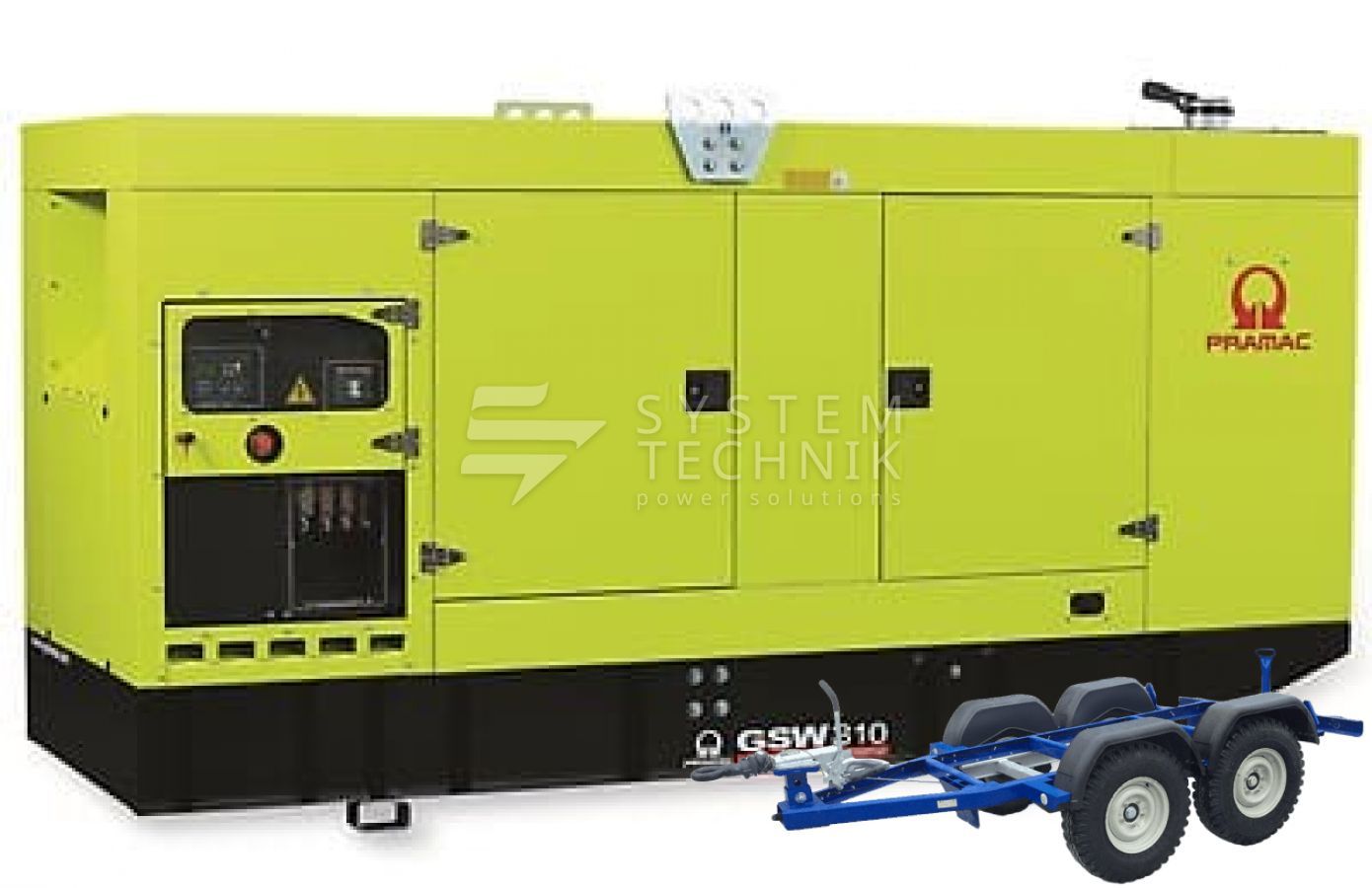 - Дизельный генератор Pramac GSW 310 DO 400V В кожухе на прицепе