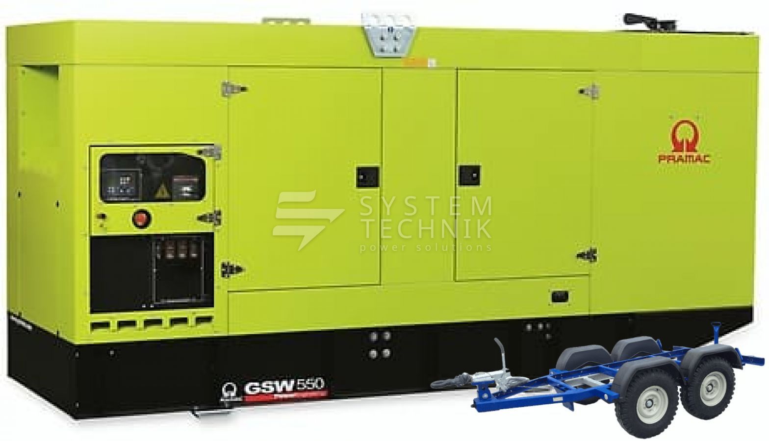 - Дизельный генератор Pramac GSW 550 P 400V В кожухе на прицепе