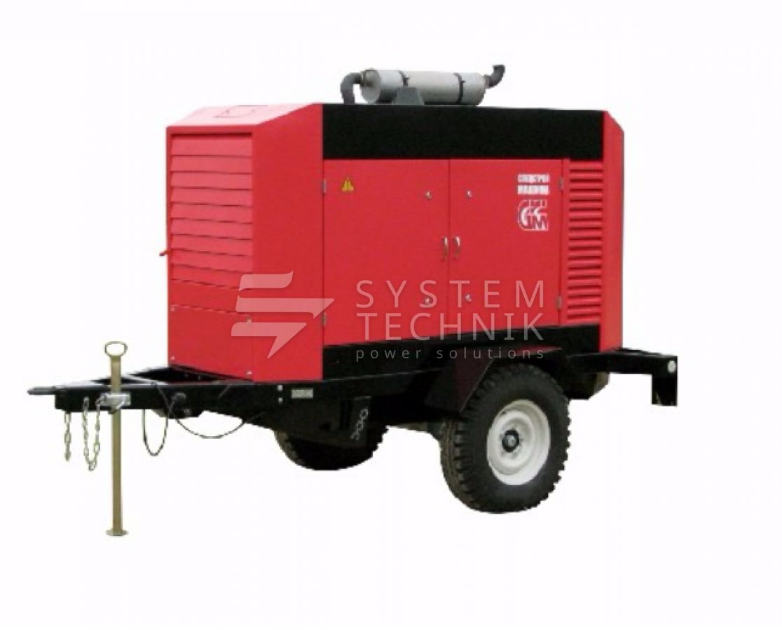- ССМ ЭД-60-Т400-1РКМ1 в шумозащитном кожухе на шасси на прицепе
